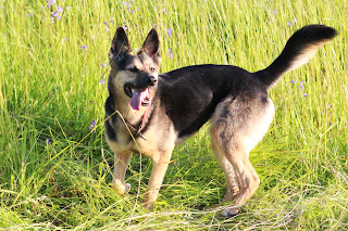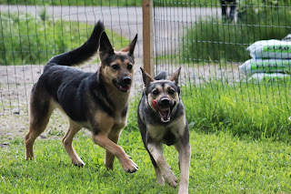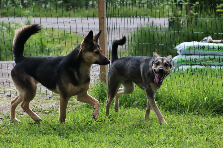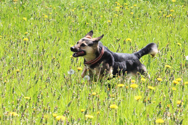Tänään Soppa pääsi vuorostaan juoksuttamaan Pimua mun mittaiseen heinikkoon ja rallien loppuun käytiin vielä vähän pulikoimassa.
